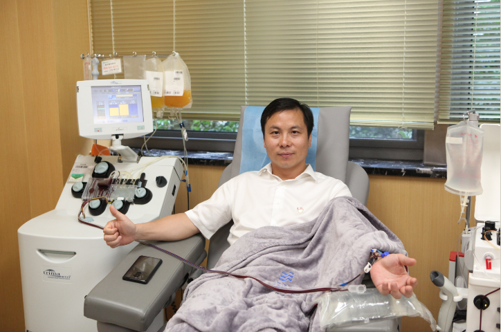 徐祝新从1999年开始献血,2015年以后改献全血为献血小板。他说,这是因为献血一年最多两次,而血小板每隔14天就可以献一次。献血小板可以救助更多的人。